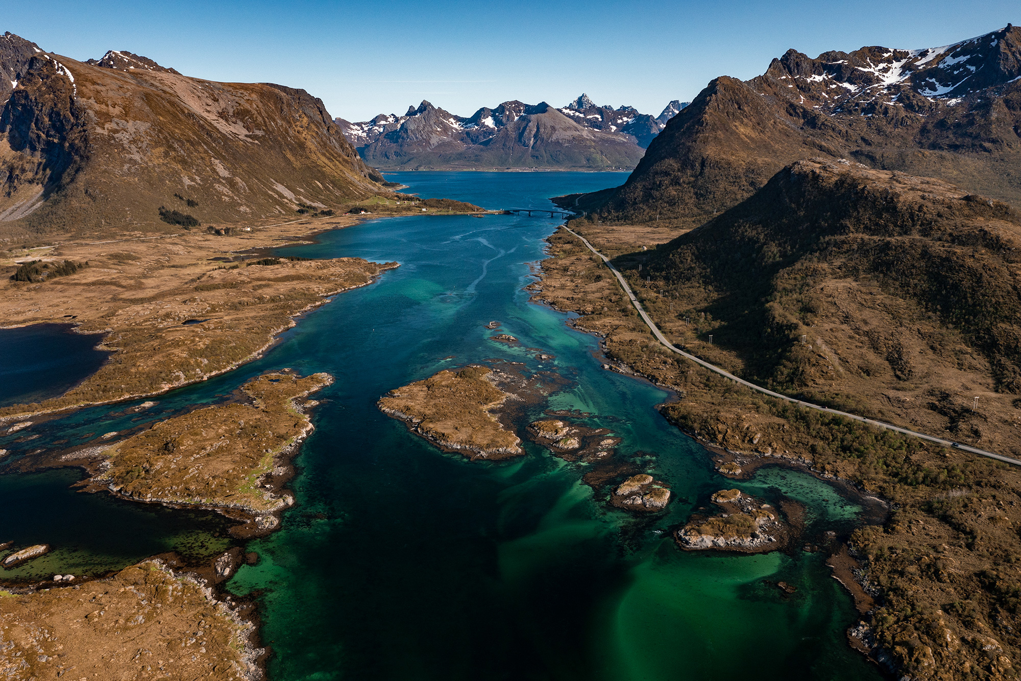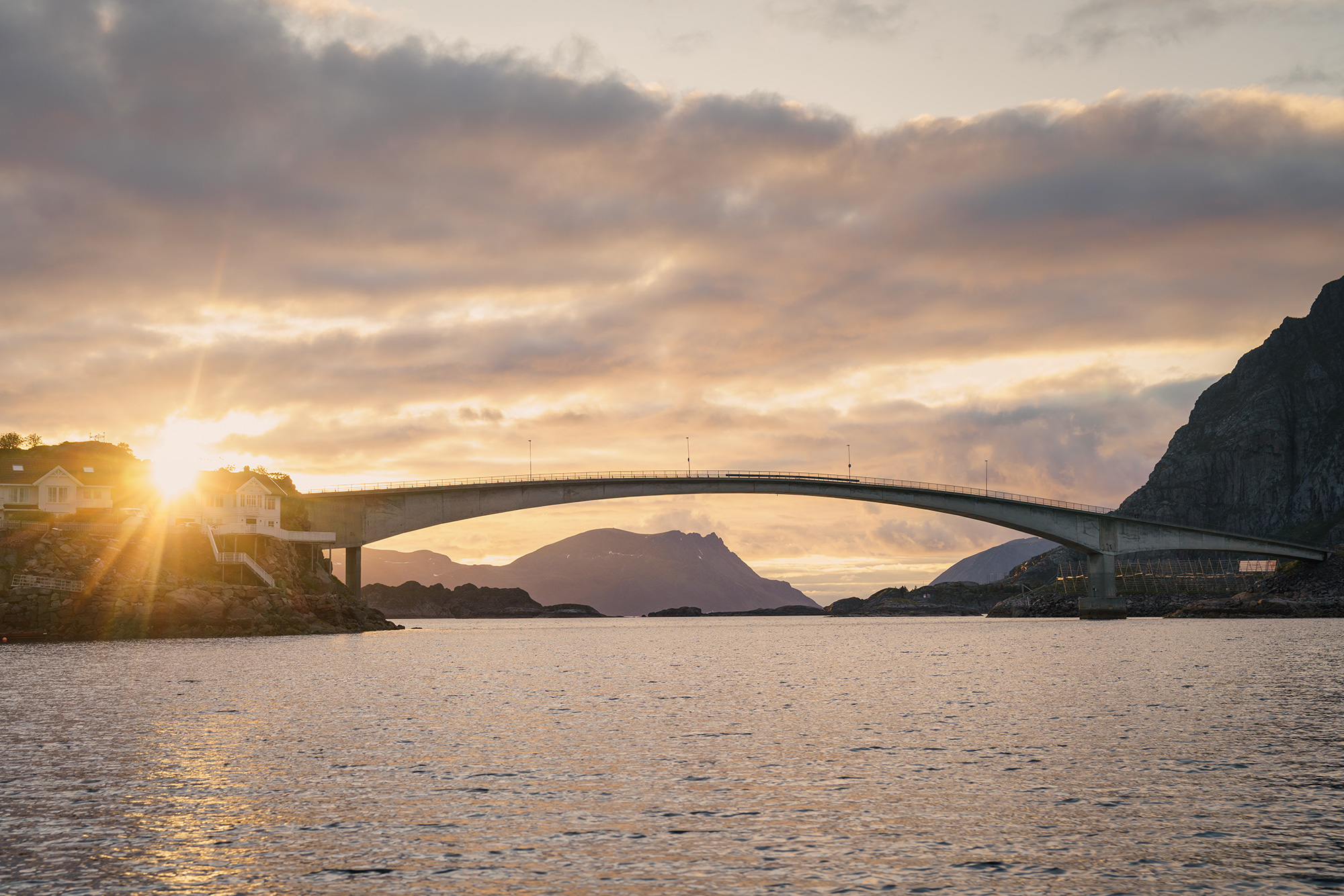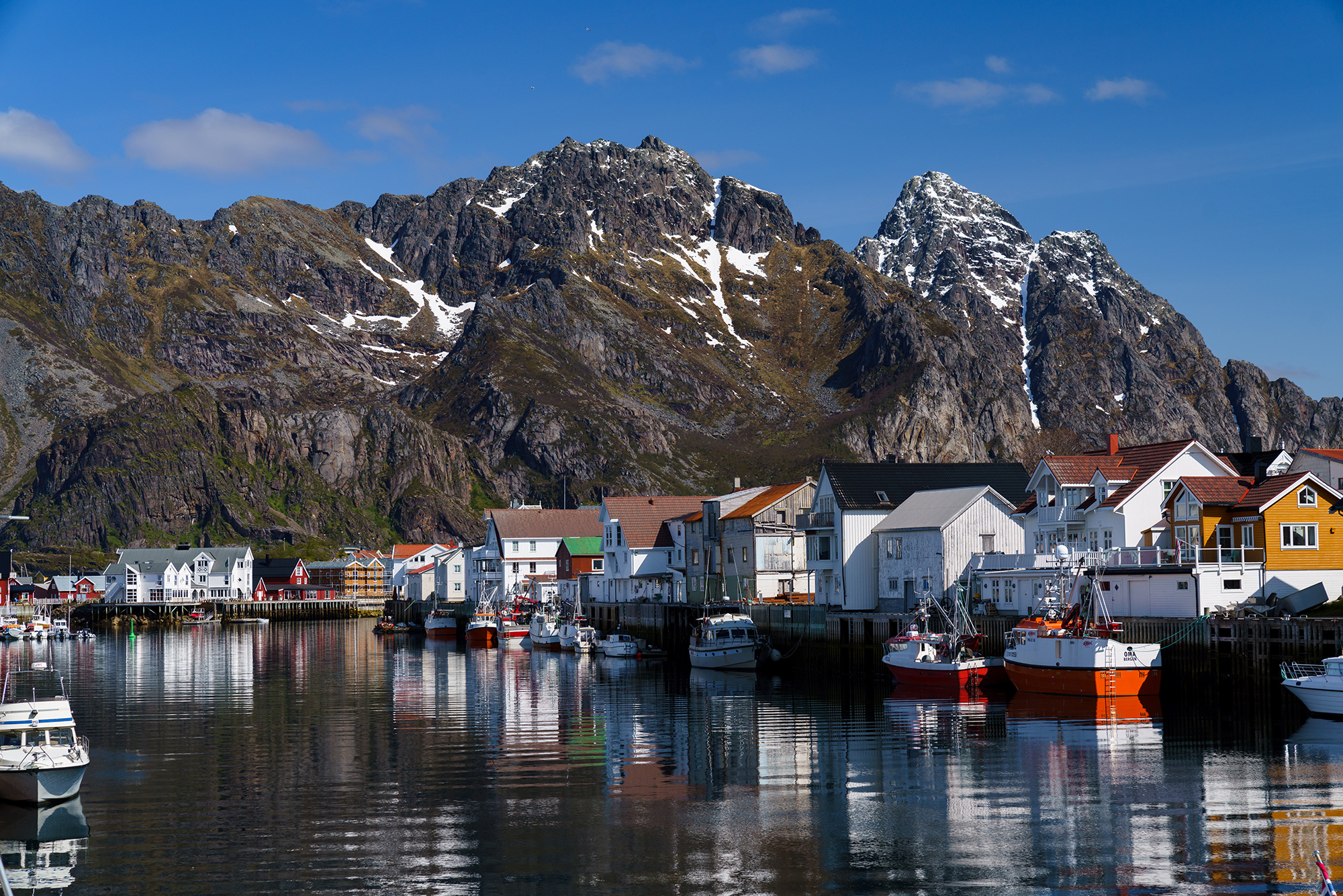 Day three saw a longer but incredibly scenic drive of 350km. The first part of the day ran along green valley floors, surrounded by high, barren mountains. Then we hit the coast and headed towards the Lofoten Islands, nestled close to the mainland, but with a topography all of their own. Set on a group of tiny islands at the foot of the imposing Vagakallen mountain is the charming fishing village of Henningsvær, our home for two nights.