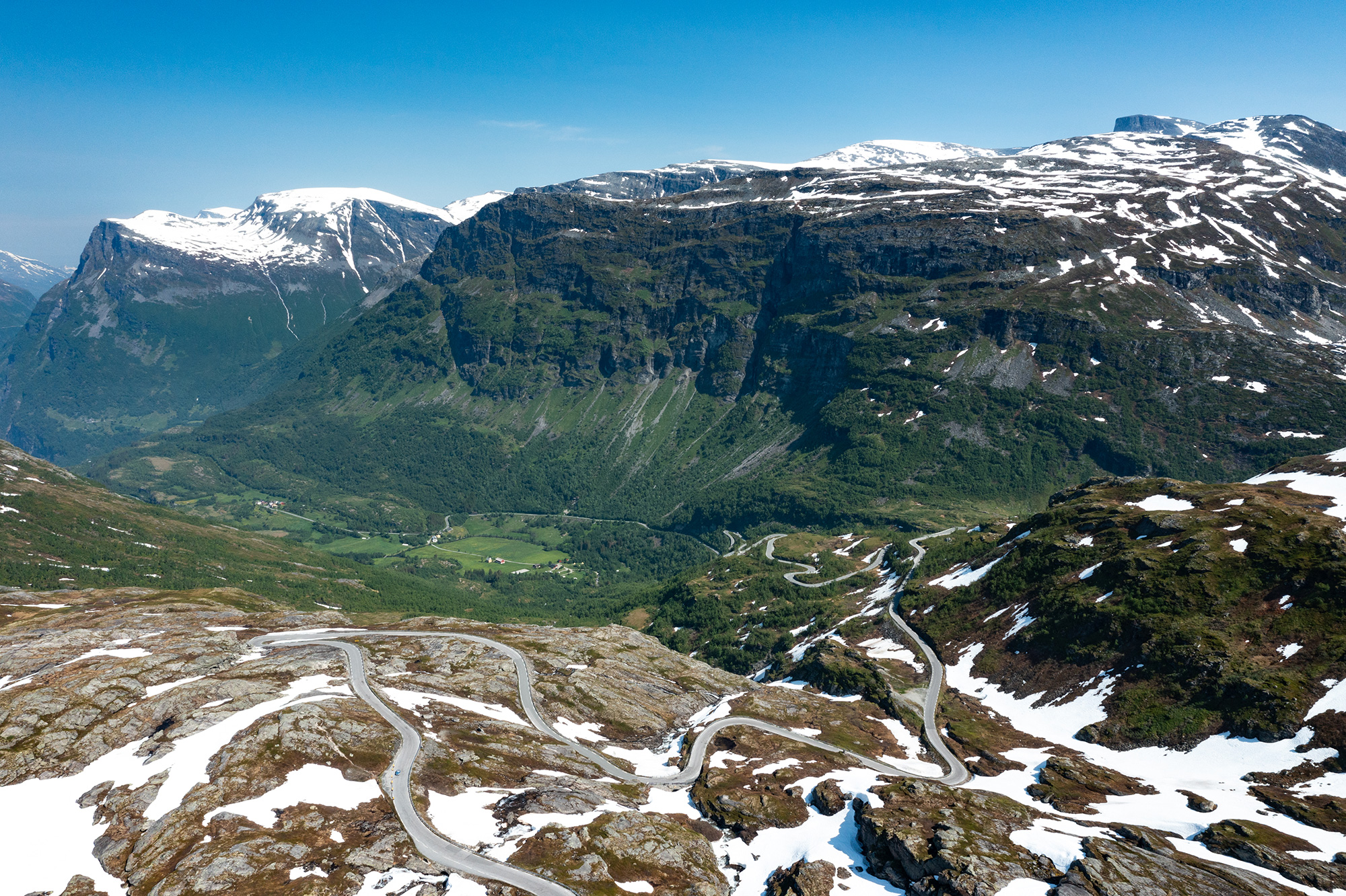 Trollstigen is hard to top but we tried our best on day 11 with another day full of breath-taking mountain passes. Our lunch stop was a small farm where we enjoyed a meal made completely from produce grown or farmed on site. The afternoon saw us take on Sognefjellet, Northern Europe’s highest mountain pass at 1400m. Although there was snow beside the road it was still a pleasant temperature for those in convertibles to make the most of the sunshine!